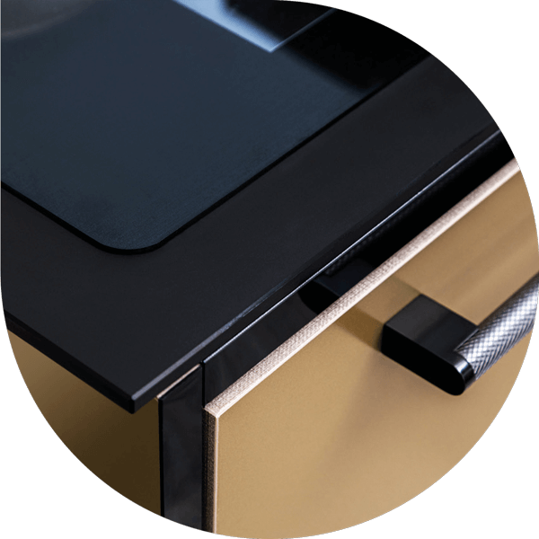 (con verniciatura bronzo metallizzato) studiato per resistere al vapore. Il mobile è dotato di piano in vetro temperato che può ospitare una macchina caffè espresso o semiautomatica