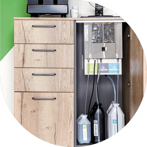 Con CuppyClean puoi lavare, sanificare ed asciugare istantaneamente tazze da caffè in ufficio, senza allacciamenti idrici e scarico.